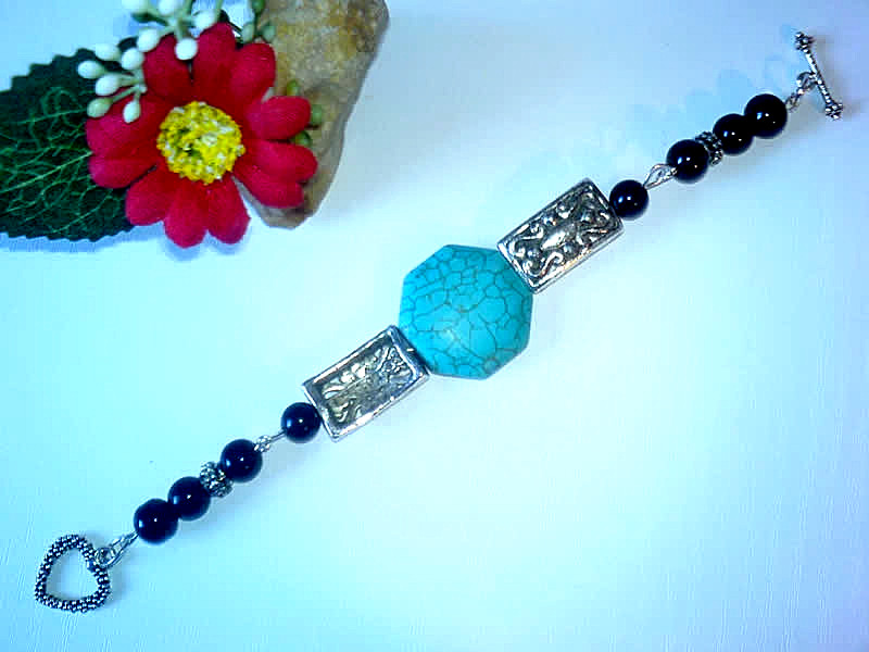 cu piatra semipretioasa- turcoaz, argint tibetan si margele sticla